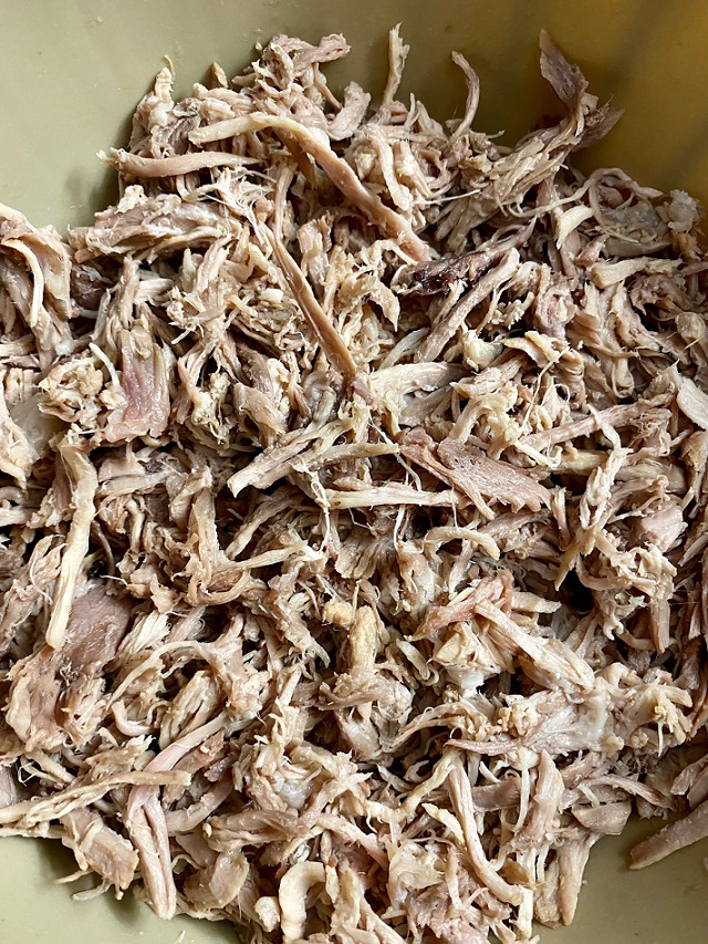 - Мясо разделить на волокна, бульон процедить. Соль перемешать с бульоном. Можно соль положить в каждую банку отдельно.